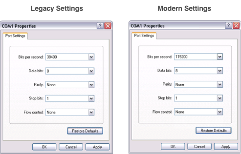 legacy (serial): screen /dev/ttySx 38400 OR legacy (usb): screen /dev/ttyUSBx 38400 OR modern (serial): screen /dev/ttySx 115200 OR modern (usb): screen /dev/ttyUSBx 115200