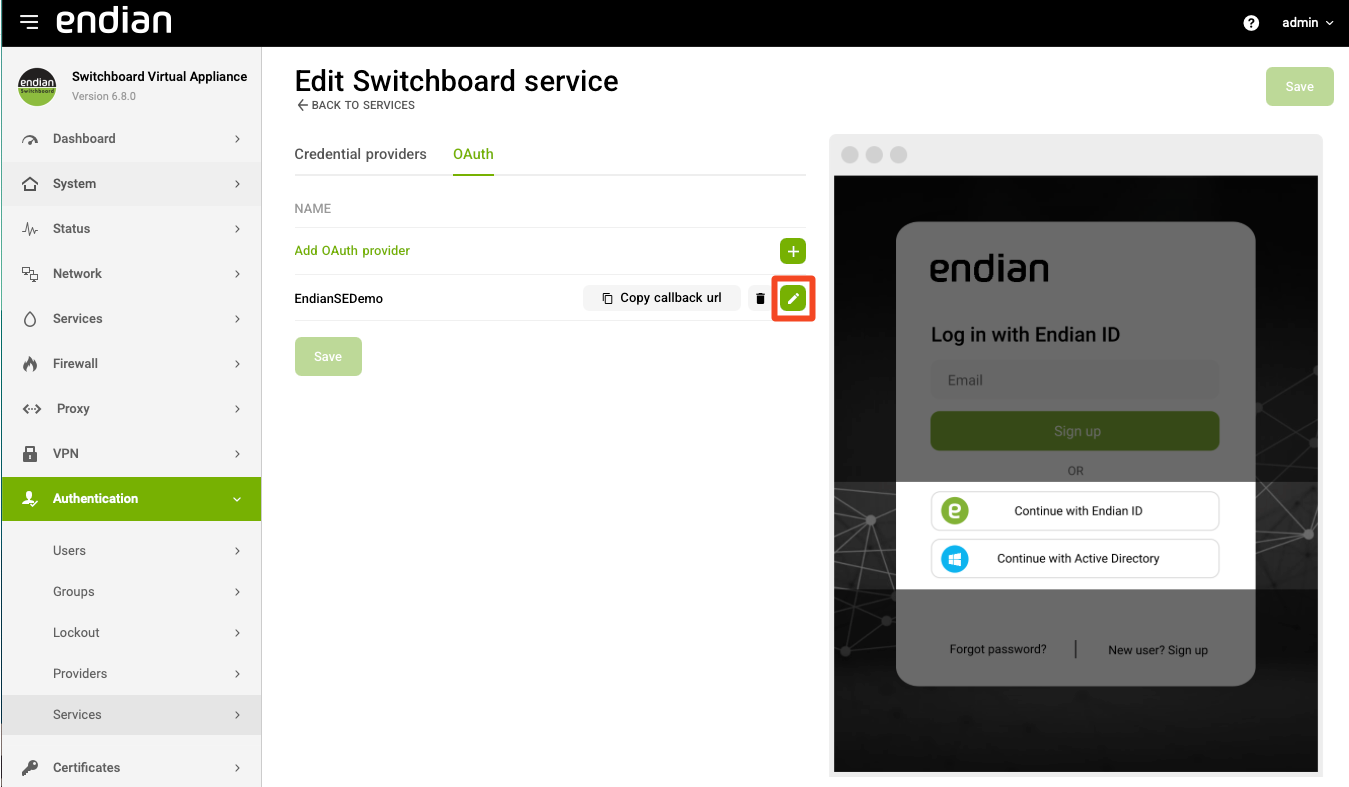 Navigate to Authentication > Services and select the edit icon for your desired OAuth provider.