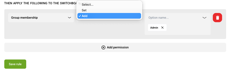 Match All Rules: This policy will check for all matches in all onboarding rules and apply their combined outcomes (assignments). This means if a user belongs to more than one group, for example, then for each rule that matches the system would additively apply each rule. This allows organizations to "mirror" the structure of the authentication system on the Switchboard platform.