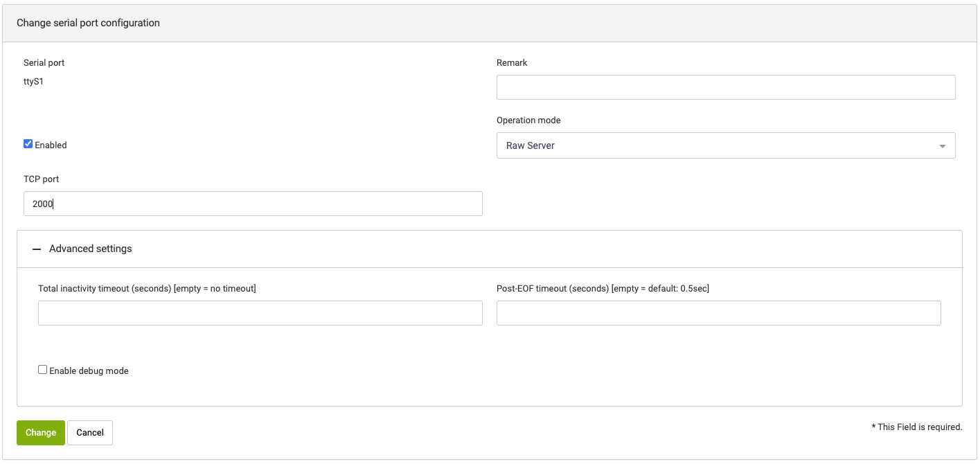 - Optionally enable console mode (mutually exclusive with Serial Server).