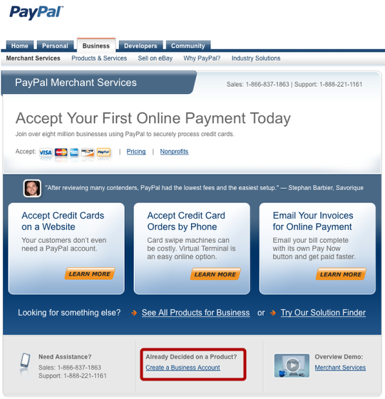 Create PayPal Business Account