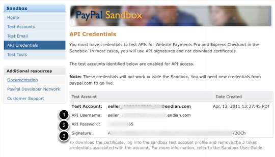 Once the seller account is complete, we can review the API credentials we'll need to provide for the Endian hotspot testing. You can find this under the main menu for the Sandbox, select API Credentials. You should a screen similar to the above with unique API information.